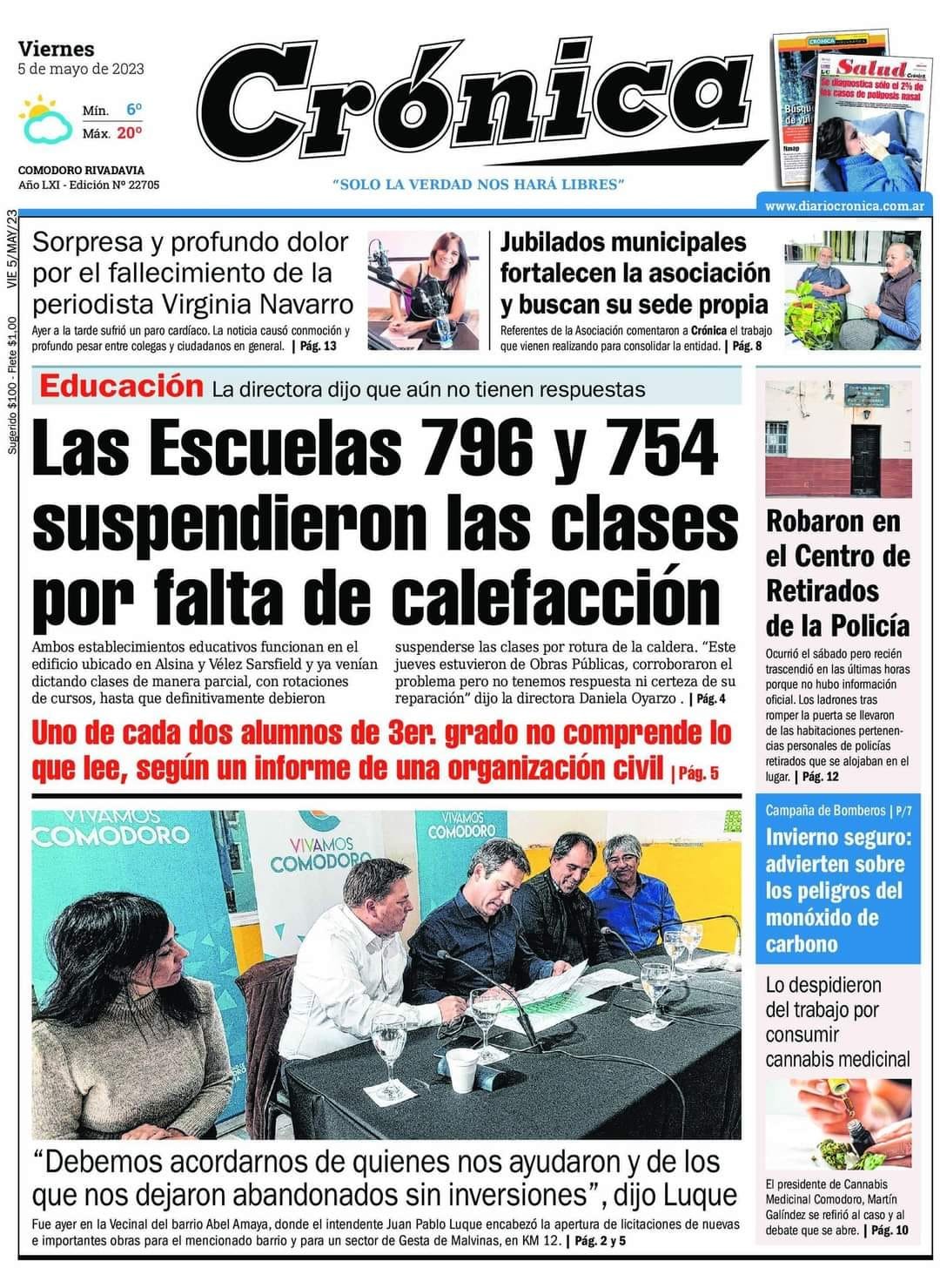 Crónica destaca que las escuelas 796 y 754 suspendieron las clases por falta de calefacción