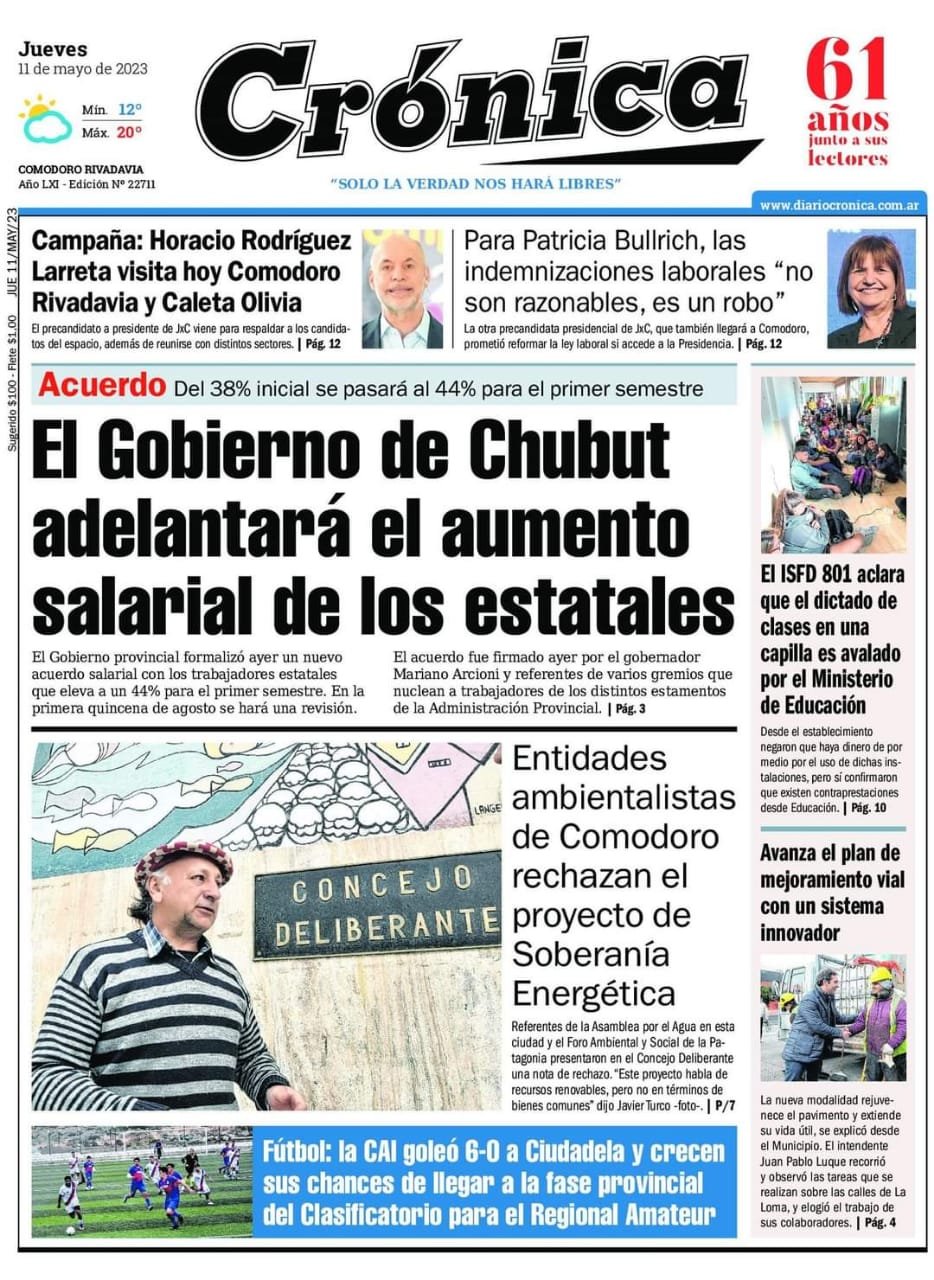 Crónica destaca que el gobierno de Chubut adelantará el aumento salarial de los estatales.