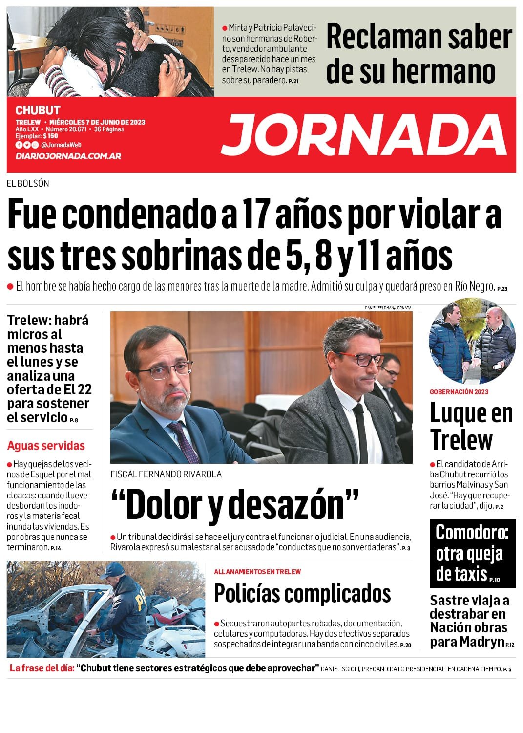 Jornada muestra que fue condenado a 17 años por violar a sus tres sobrinas de 5, 8 y 11 años.