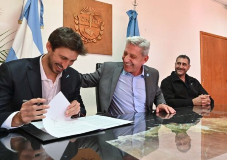 La rúbrica se realizó en el despacho de Mariano Arcioni ubicado en el Ministerio de Economía de Rawson.