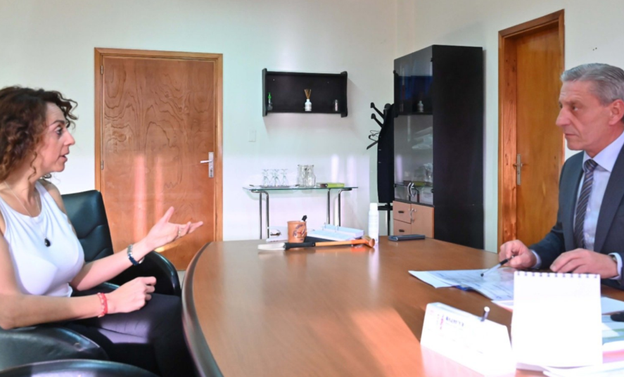 El gobernador Mariano Arcioni se reunió con la intendenta de Camarones, Claudia Loyola, para analizar el avance de obras de infraestructura que se llevan adelante en la localidad.
