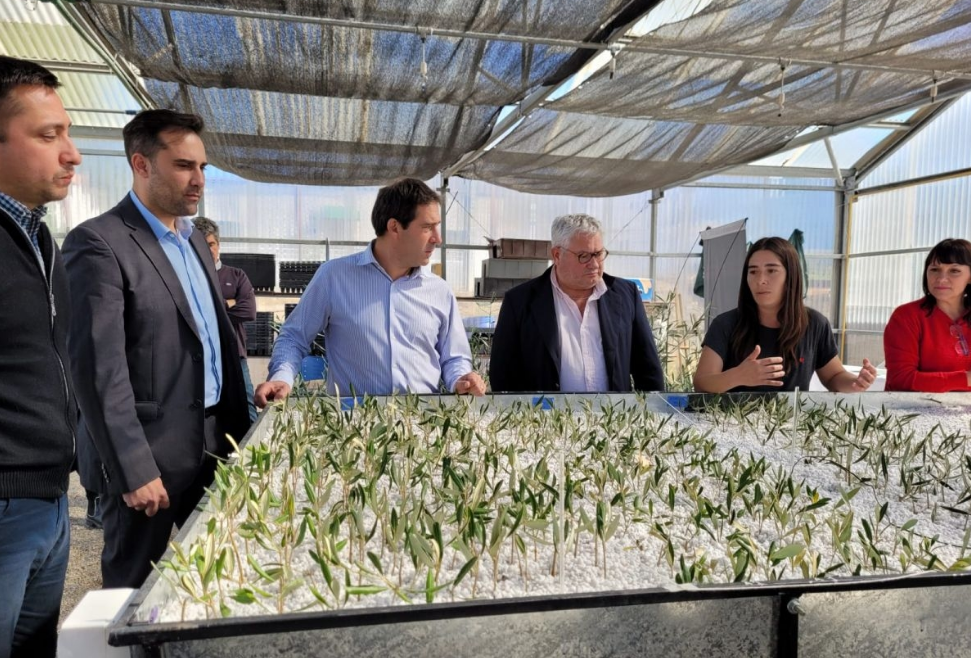 Los funcionarios inauguraron una mesa de multiplicación para la producción de plantas de olivos en instalaciones de la Agencia Comodoro Conocimiento y recorrieron el invernadero.