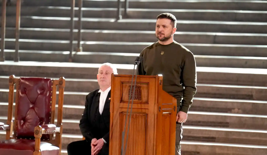 Volodimir Zelenski pronunció un discurso ante el Parlamento de Londres luego de reunirse en Downing Street con el primer ministro, el conservador Rishi Sunak, durante su primer viaje a territorio británico desde el inicio de la guerra.