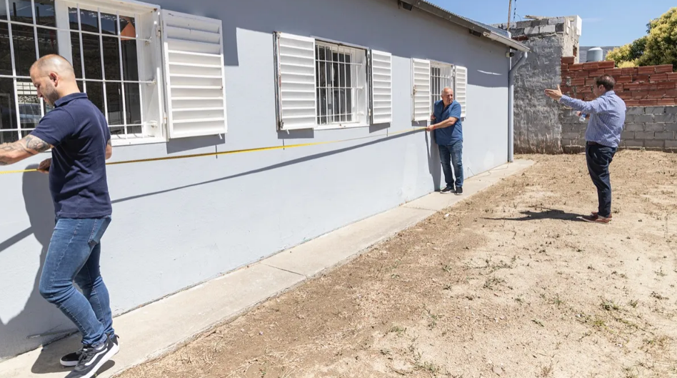 Los secretarios Maximiliano Sampaoli, Gustavo Fita y Maximiliano López recorrieron el Centro de Promoción Laboral en Comodoroel lugar para evaluar las obras a realizar.