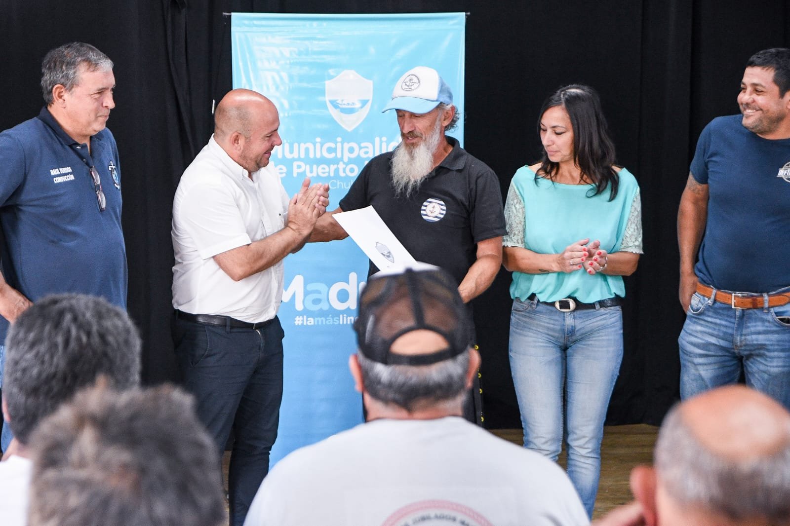 El intendente de Puerto Madryn, Gustavo Sastre, encabezó la entrega de la preadjudicación de tierras para que la Asociación Civil Centro de Jubilados y Pensionados de Marineros “26 de Abril” pueda construir su nueva sede. El acto se llevó a cabo en las instalaciones del Teatro del Muelle. Lo acompañó la secretaria de Obras Públicas y Desarrollo Urbano, Lucía Taylor.