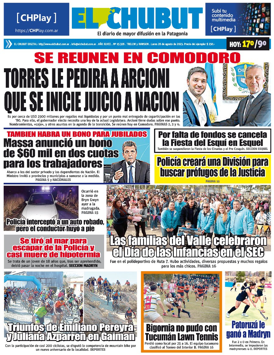 Según El Chubut, la reunión entre el gobernador en funciones Mariano Arcioni y el gobernador electo Nacho Torres será hoy en Comodoro. El diario valletano se hace eco de una información anticipada detalladamente ayer por ADNSUR: una futura demanda judicial de Torres al gobierno nacional por regalías mal liquidadas. Le pedirá a Arcioni que la presente antes del 10 de diciembre.