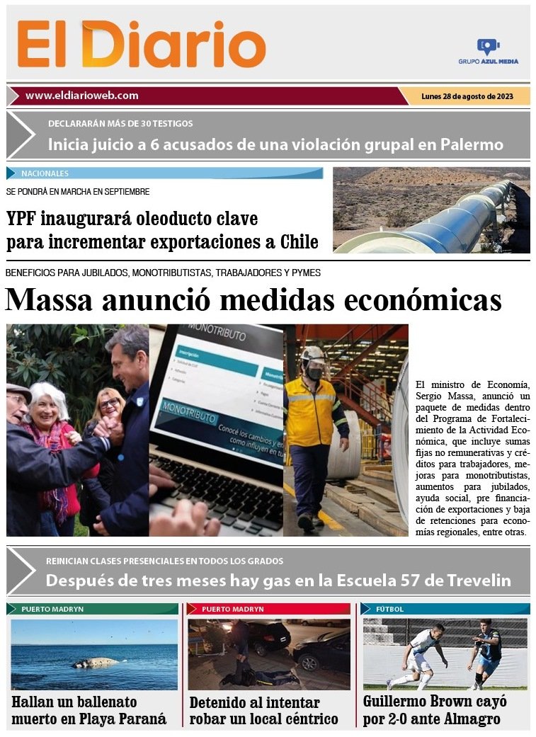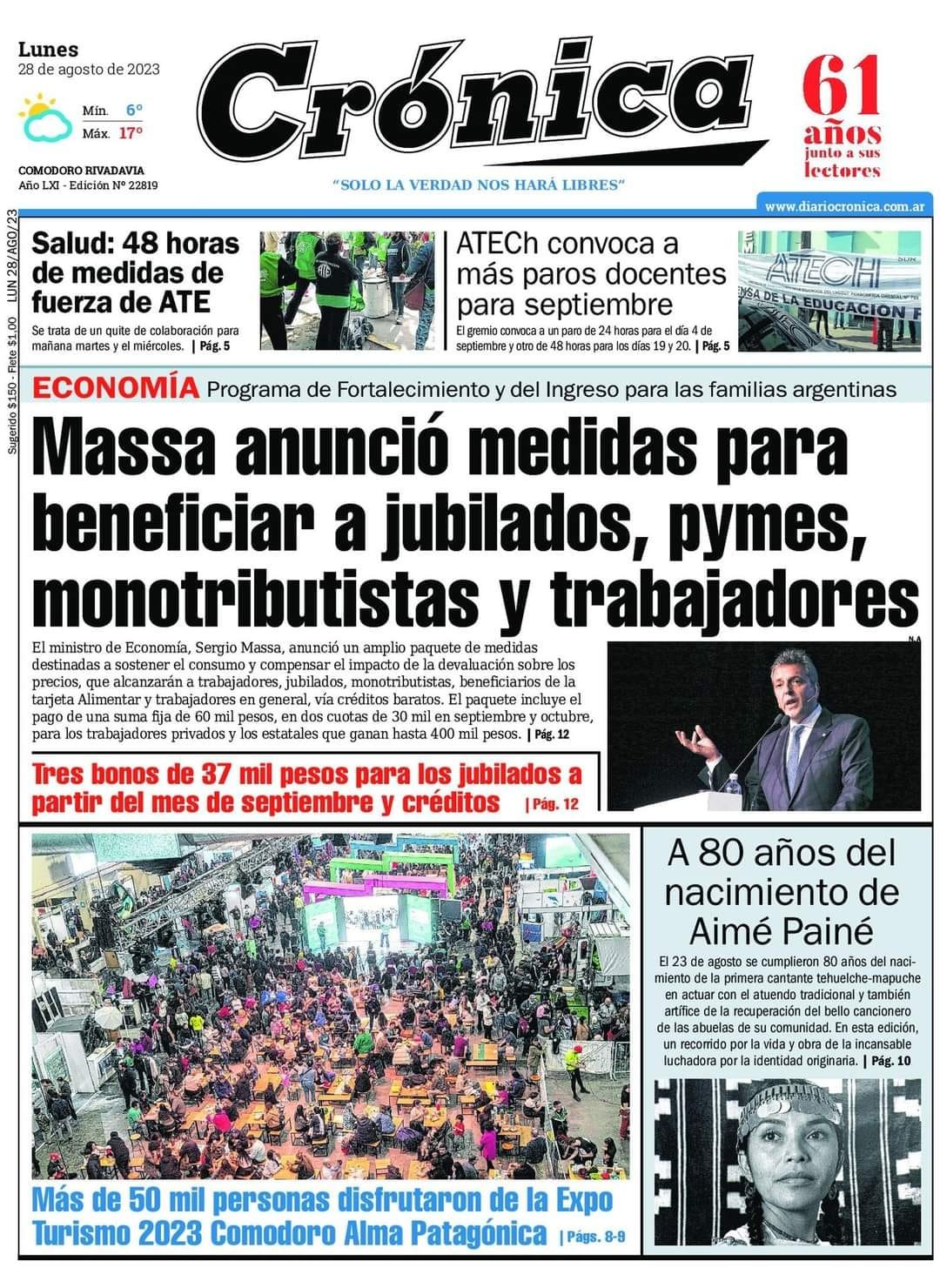 Crónica destaca que Massa anunció medidas para beneficiar a jubilados, pymes, monotributistas y trabajadores.