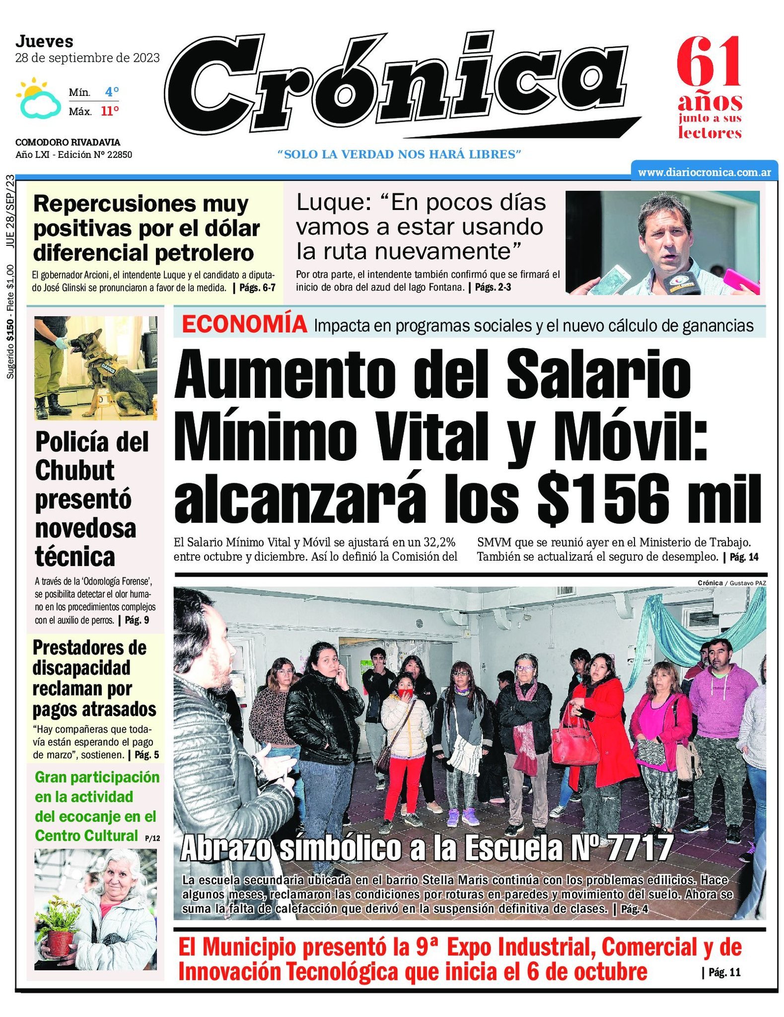 Crónica destaca el aumento del Salario Mínimo, Vital y Móvil: alcanzará los $156 mil.