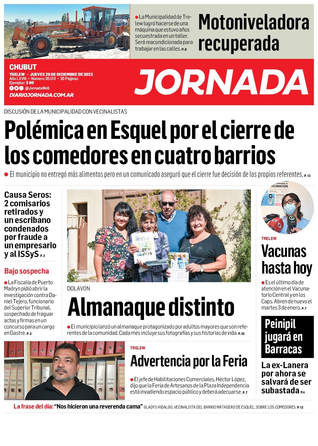 Jornada resalta que hay polémica en Esquel por el cierre de los comedores en cuatro barrios.