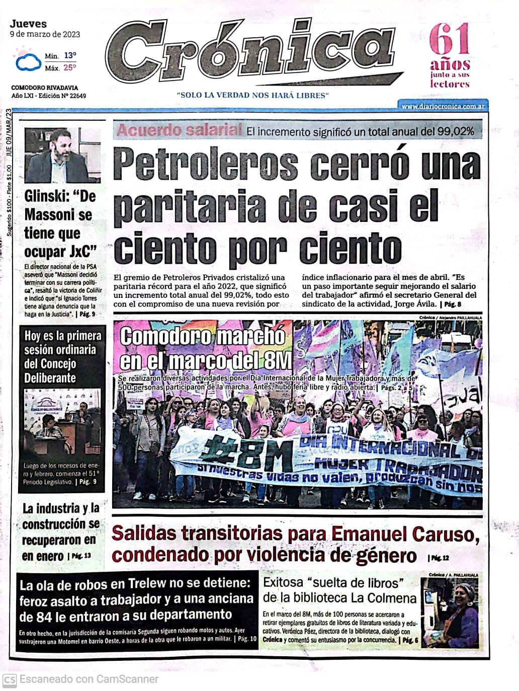 Crónica destaca que petroleros cerró una paritaria de casi el ciento por ciento.