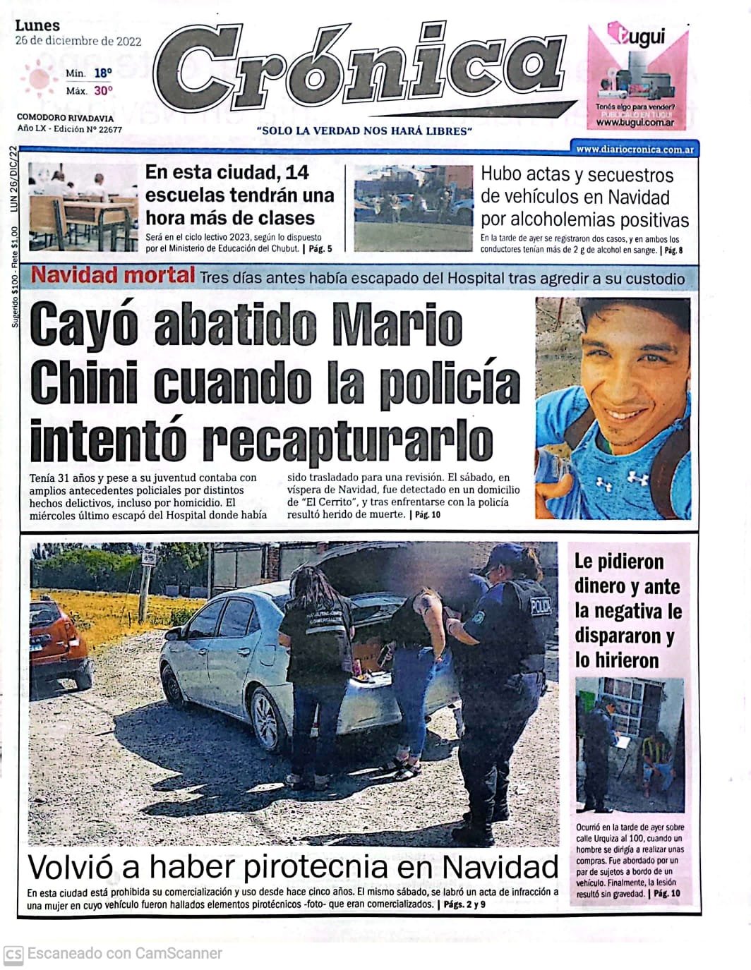 Crónica señala que cayó abatido Mario Chini cuando la policía intentó recapturarlo.