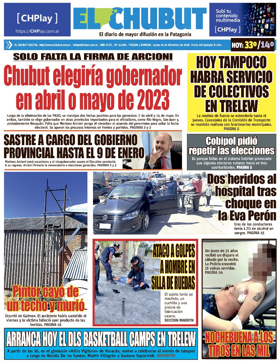 En su editorial «Arrancó el año electoral con cambio de escenario, acuerdos y disputas en el horizonte», El Chubut señala que el gobernador Mariano Arcioni «convocaría a elecciones provinciales y que «Sastre preferiría 7 de abril (junto a Río Negro) y Luque, 14 de mayo (con San Juan)». Lo que también «desharía» el adelantamiento de las elecciones en Trelew.