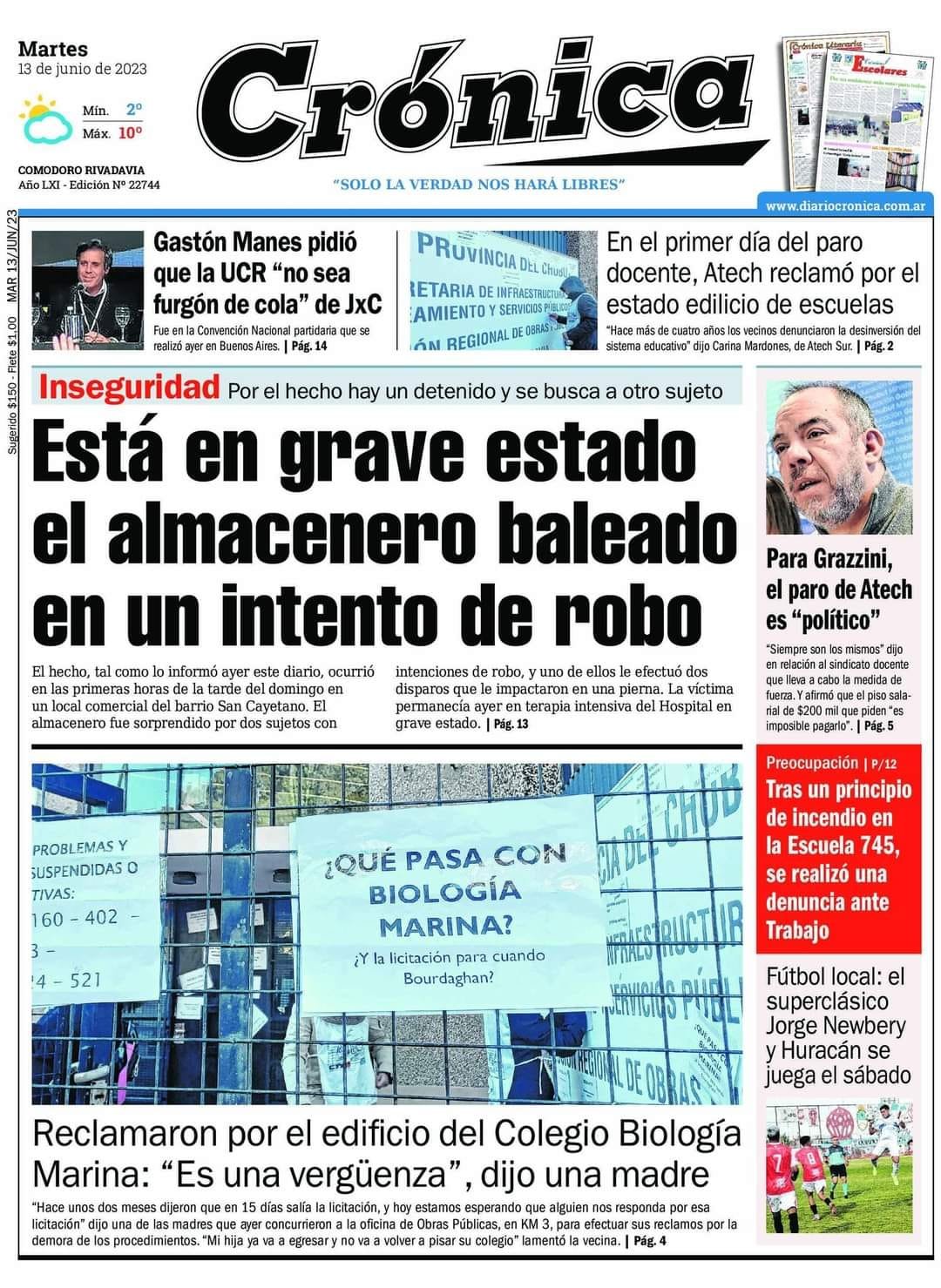 Crónica destaca que está en grave estado el almacenero baleado en un intento de robo