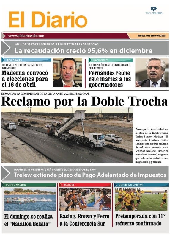En azul los links a las notas originales en los diarios. Para recibir el resumen de noticias, mandá un mensaje acá http://wa.me/5492805051809.