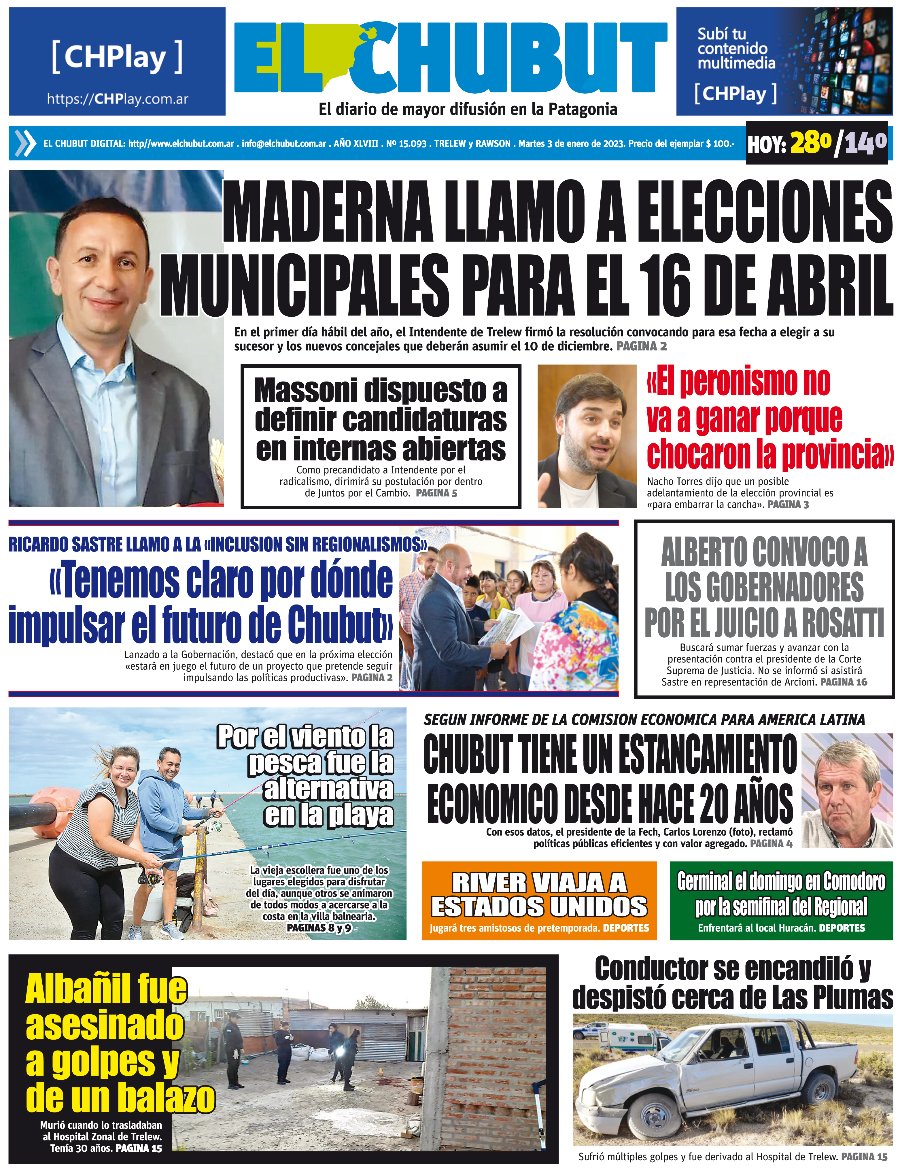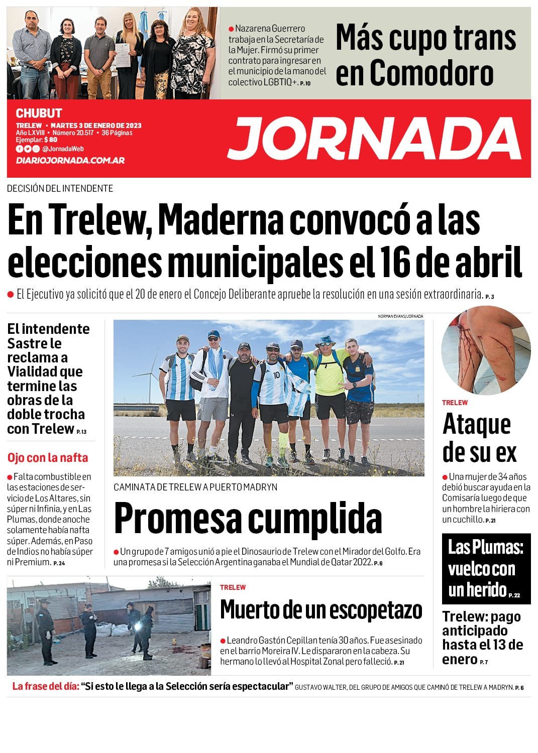 Jornada resalta que en Trelew, Maderna convocó a las elecciones municipales el 16 de abril.