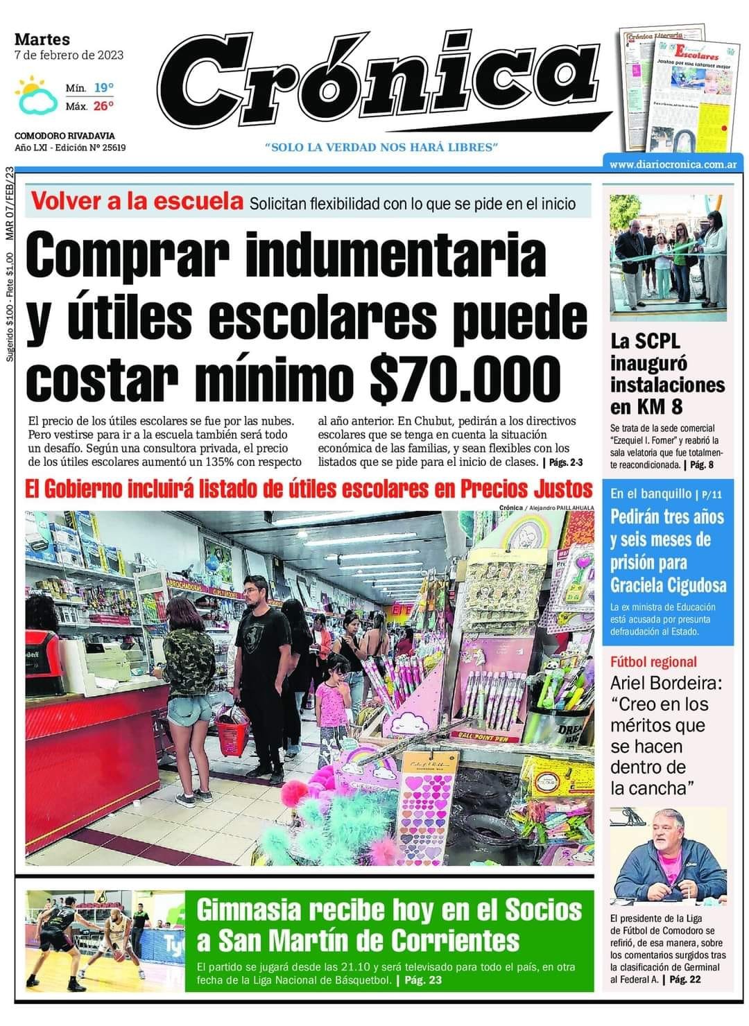 Crónica destaca que comprar indumentaria y útiles escolares puede costar mínimo $70.000.