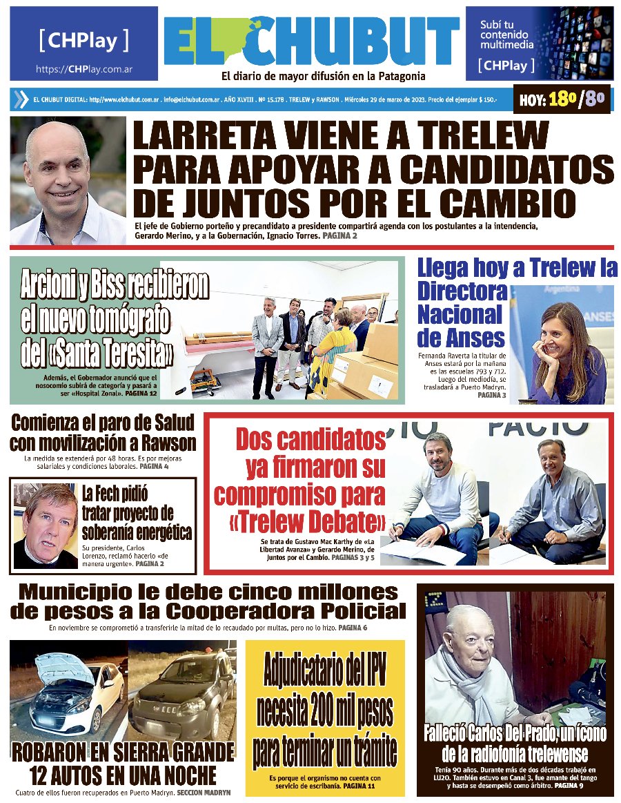 En Trelew la Cooperadora Policial denunció que nunca recibió los aportes que por convenio el Municipio se comprometió a cederle por la recaudación de multas. El municipio avanza con las obras del Centro de Visitantes del Patagotitan Mayorum.