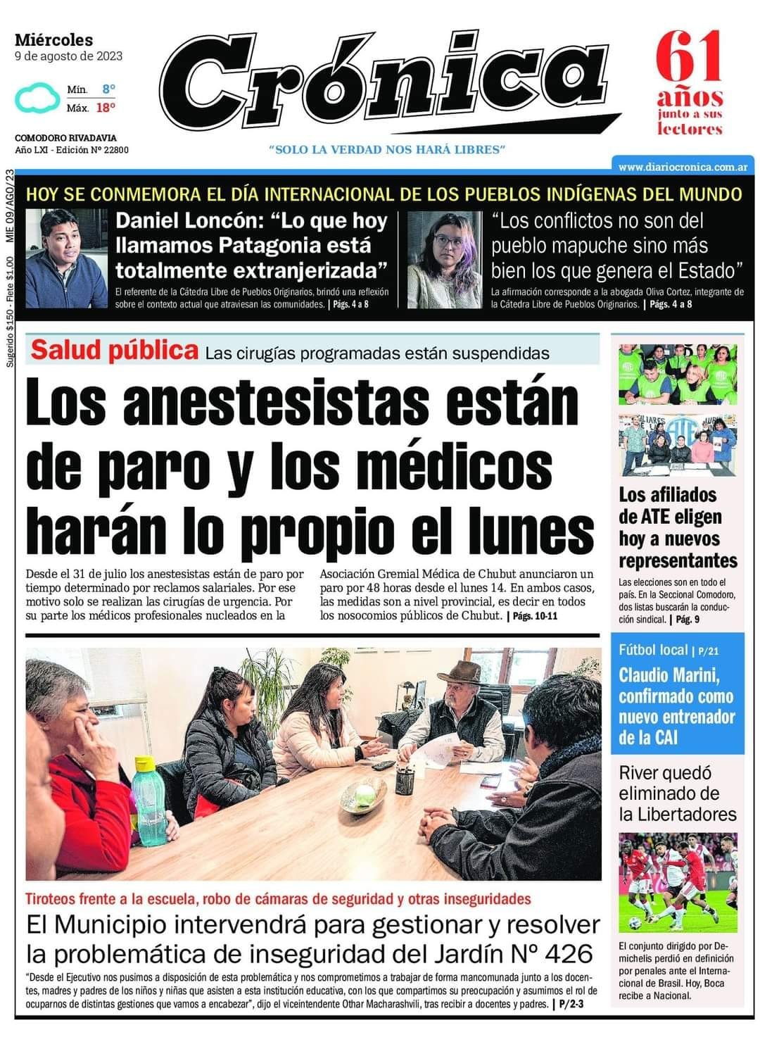 Crónica destaca que los anestesistas están de paro y los médicos harán los propio el lunes.