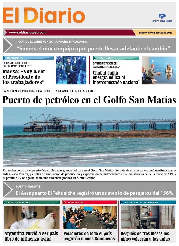El Diario resalta el puerto de petróleo en el Golfo San Matías.