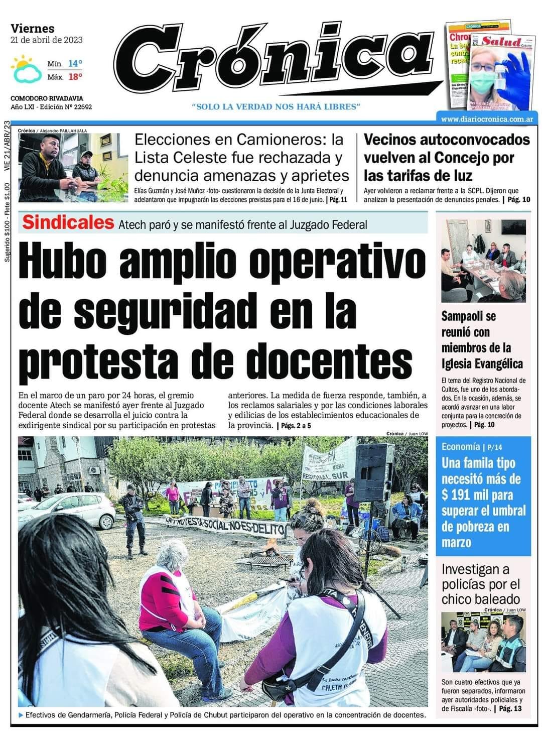 Crónica destaca que hubo amplio operativo de seguridad en la protesta de docentes.