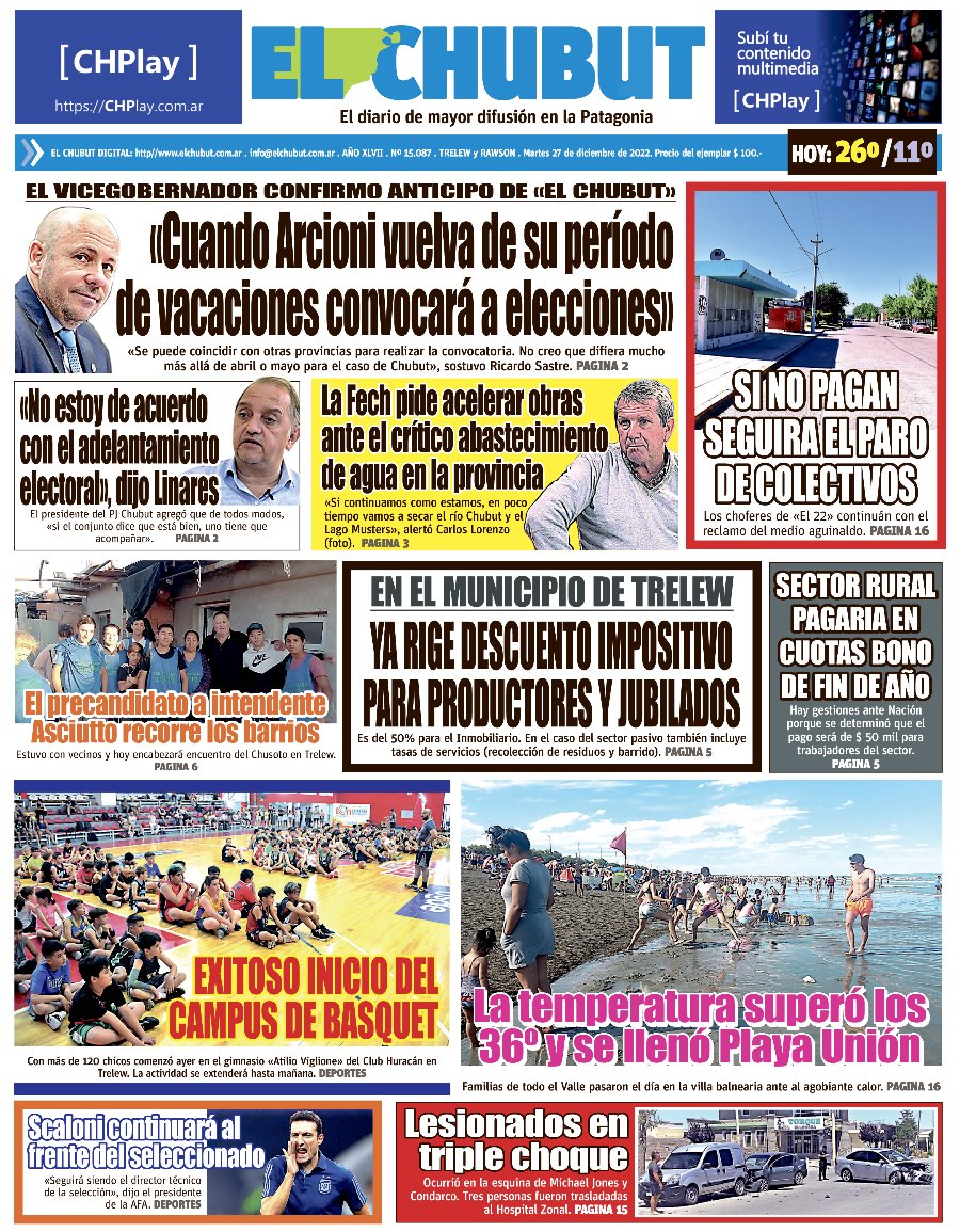¡Buen día! Desde Atento Chubut brindamos un resumen de las principales noticias provinciales del día, elaborado por nuestro director Santiago Costa. En azul los links a las notas originales en los diarios.